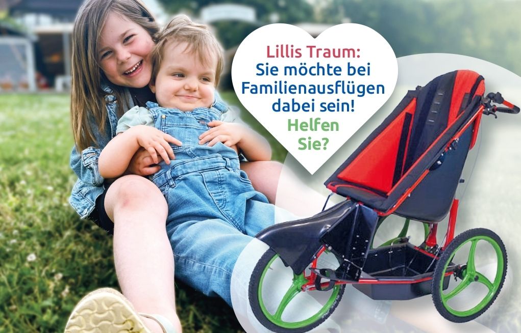 Für die Familie wäre dieses Hilfsmittel nicht nur eine praktische Unterstützung, sondern ein Stück Lebensqualität, die allen Erleichterung schenkt. Vor allem schenken Sie Lillis Geschwistern die Freude, ihre kleine Schwester mitzunehmen und nicht zurücklassen zu müssen.